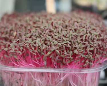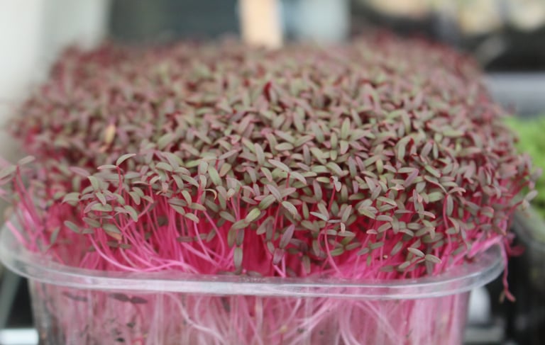 This vibrant, delicate microgreen is mild in flavour and adds a beautiful flash of dark pink to any dish!