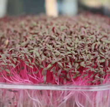 This vibrant, delicate microgreen is mild in flavour and adds a beautiful flash of dark pink to any dish!